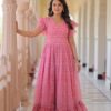 Be the first to review “Women’s Cotton Floral Printed Ruffle Anarkali Gown Dress (Pink)” Cancel reply